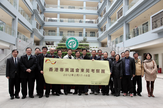 2月17日,香港专业议会主席陈卓禧率考察团在东莞市港澳事务局副局长陈国良陪同下,前来我校参观交流。