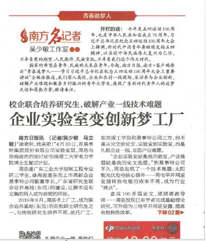 为研究生教育提供多元化的实践和创新载体,学校在资源与环境、机械工程等行业企业建立省级示范性专业学位研究生联合培养基地6个、校研究生联合培养基地11个。学校成立首个专业学位研究生“产教融合”培养工作站(长安),创新研究生政校企协同培养新模式。首次设立专业学位研究生协同培养项目,从招生、课程、培养和学位授予全过程试点推进专业学位研究生教育。建设了中国散裂中子源、北京大学东莞光电研究院、广东长盈精密技术有限公司等57家创新培养示范点。南方日报以“校企联合培养研究生,破解产业一线技术难题――企业实验室变创新梦工厂”为题介绍了我校和广东工业大学及易事特集团联合培养的成功案例。