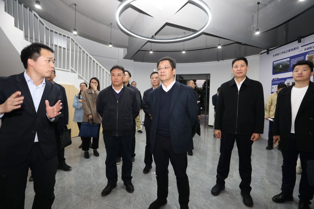 王再华一行参观了我校卫星地面接收站,听取了广东省城市生命线工程智慧防灾与应急技术重点实验室成果汇报。