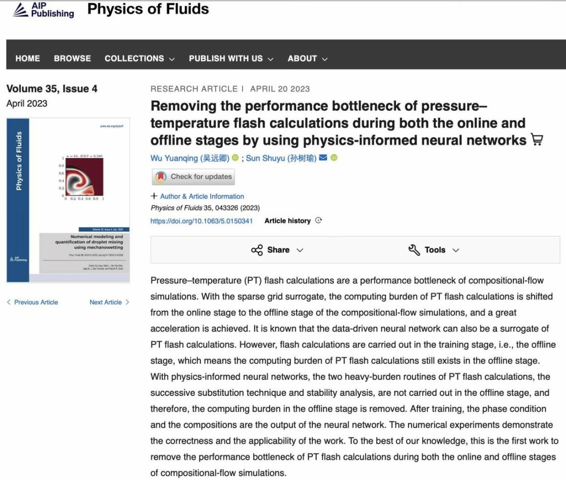 近日,吴远卿特聘副教授在流体力学领域权威期刊Physics of Fluids 上发表题目为Removing the performance bottleneck of pressure–temperature flash calculations during both the online and offline stages by using physics-informed neural networks的研究论文(DOI: https://doi.org/10.1063/5.0150341)。九九精品视频一区在线久久久久久久久久毛片精品美女|国产99久久久久久免费看|中文精品99久久国产|国产69精品久久久久9999|精品久久久久久中文字幕无码|亚洲熟妇无码久久精品国产精品99|精品国产天堂综合一区在线为本文第一完成单位,阿卜杜拉国王科技大学的孙树瑜教授为本文通讯作者。