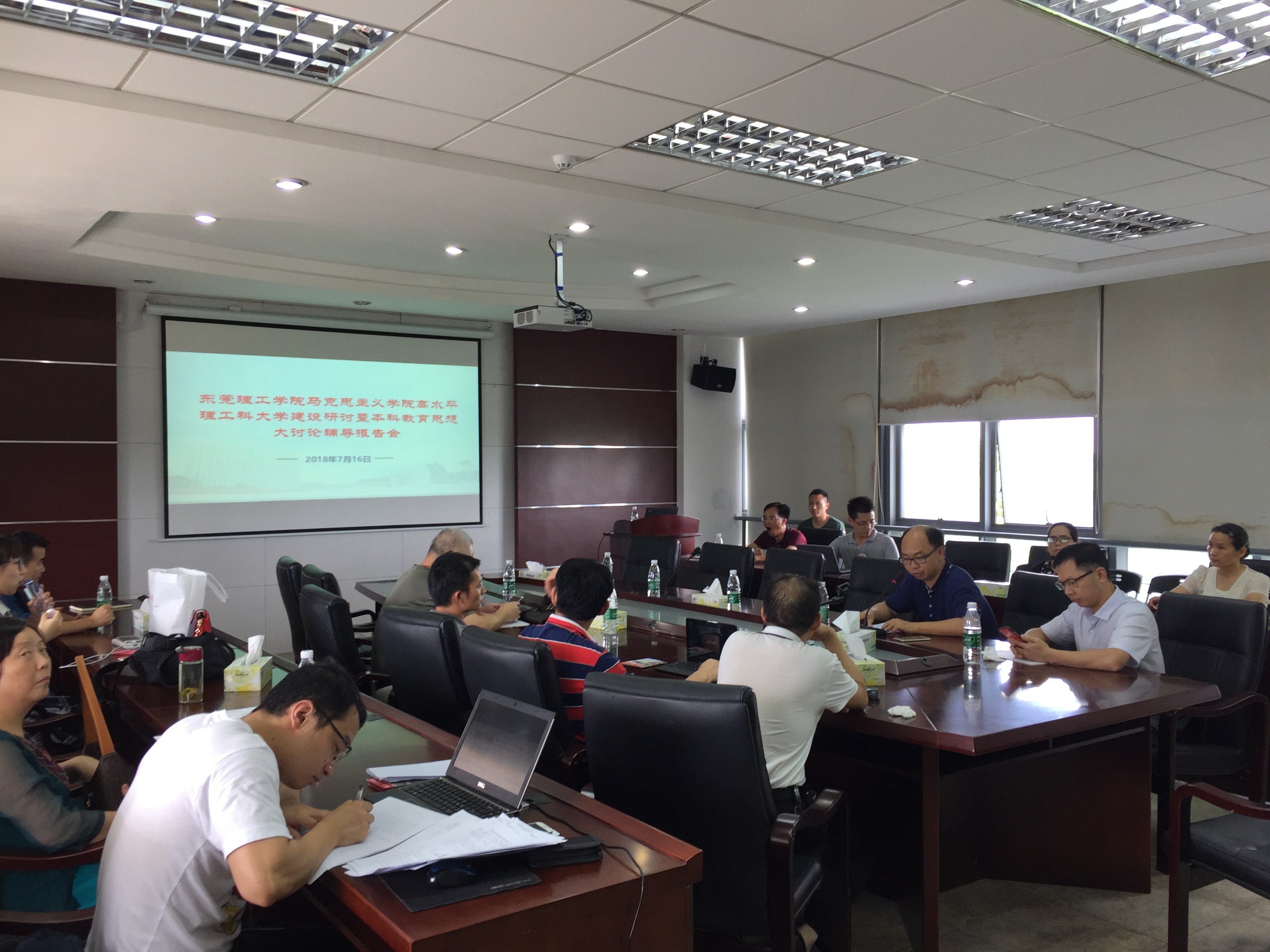 马克思主义学院认真落实学校党委工作部署,7月16日下午,在经管楼506举行了学院高水平理工科大学建设研讨暨本科教育思想大讨论辅导报告会。马克思主义学院全体教师参加。