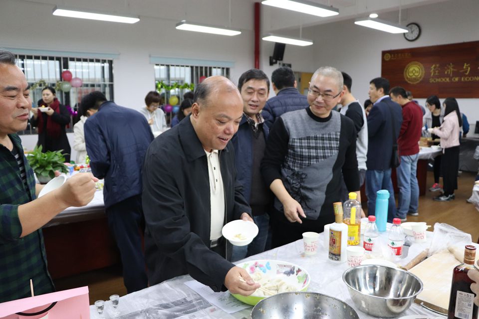 1月5日下午,经济与管理学院分工会于松山湖校区同聚饺子宴。校党委副书记吕琦元,校发展与联络办公室主任崔学海和校友代表及学院领导和老师共同参加活动。
