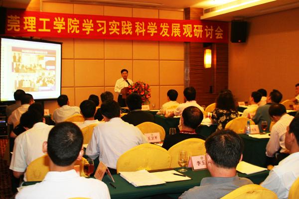 会上,就如何实践科学发展观、促进学院持续健康发展和迎评促建等问题,展开了热烈的讨论。与会同志认为,实践科学发展观最关键的是要与学院的发展实际和工作实际结合起来,不能将实践科学发展观只停留在口头上,要通过学习实践科学发展观活动,并以迎评促建为契机,进一步明确学院“走创新之路、走特色之路、走质量办学之路、走科学管理之路”的办学思路,确立“学生为本、质量立校、综合培养、面向基层”的教育理念,依托东莞,紧贴地方,努力培养基层适用人才,为全面落实科学发展观,建设有创新特色的名牌地方院校而努力奋斗!