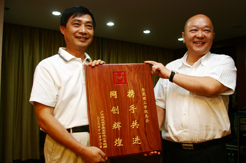 杨晓西代表我校向广东鸿发集团投资有限公司赠送纪念品。