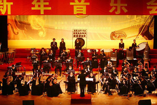 2009年12月31日晚,“广东省2009高雅艺术进校园活动——广州星海音乐学院民族乐团交响音乐会”在我校大礼堂成功举行。学校领导周致纳、杨晓西、王江水、安少华、邹晓平、戴炳源和1000余名师生一同在聆听交响音乐,感受高雅艺术的魅力中迎接2010年。