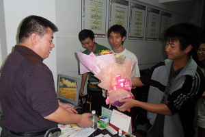 电子工程学院学生会外联部、自律部和体育部作为此次慰问活动的代表,在经过周密的安排与礼仪培训后,冒大雨送慰问。下午4:00,同学们分组行动,前往后勤楼物业水电管理中心、经营服务中心、学生公寓中心、医疗中心及保卫处办公室,为他们送上鲜花、贺卡及礼品,感谢他们多年来的辛勤劳动与付出,并祝他们在以后的日子里身体健康、工作顺利。