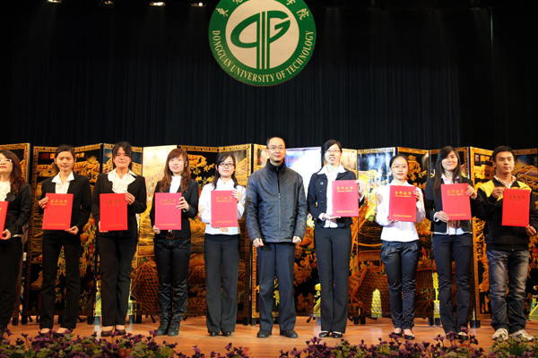 近年来,我校办学得到社会各界的大力支持,在当晚的颁奖的各类奖学金中,最引人注目的是“杨振宁奖学金”,本学年度共有6个团队获得该项奖学金,他们都是在全国各种科技竞赛中获得优异成绩的学生团队。另外,还有10家企业分别设立的奖学金,奖金总额达427500元。其中个人获得奖金最高的是由广东光大企业集团、东莞市康华投资集团有限公司、东莞市新世纪房地产开发有限公司分别设立的“光大”奖学金、“康华”奖学金”和“新世纪”奖学金,今年共有48名同学获得,每人奖金是5000元;而“新维思”奖学金、“东穗”奖学金、“驰鹏”奖学金由我校的校友设立,今年共有41人获得,;此外,还有“国基集团”奖学金、“外商协会”奖学金、“得利钟表”奖学金和“高铁科技”奖学金,今年共有65人获得。