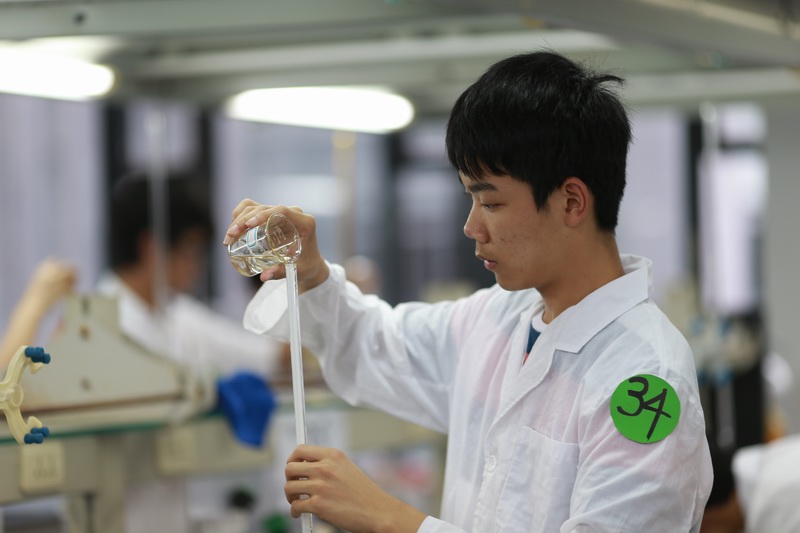 此前,化环学院开放实验室,供各选手赛前练习。选手们都积极准备,以最好的状态去迎接此次比赛。比赛时,选手们认真思索实验原理、实验步骤,聚精会神,认真完成实验。评委老师与实验室助理认真仔细观看选手的操作,并在赛后一同讨论比评分要点,力求做到公平比赛、公正打分。