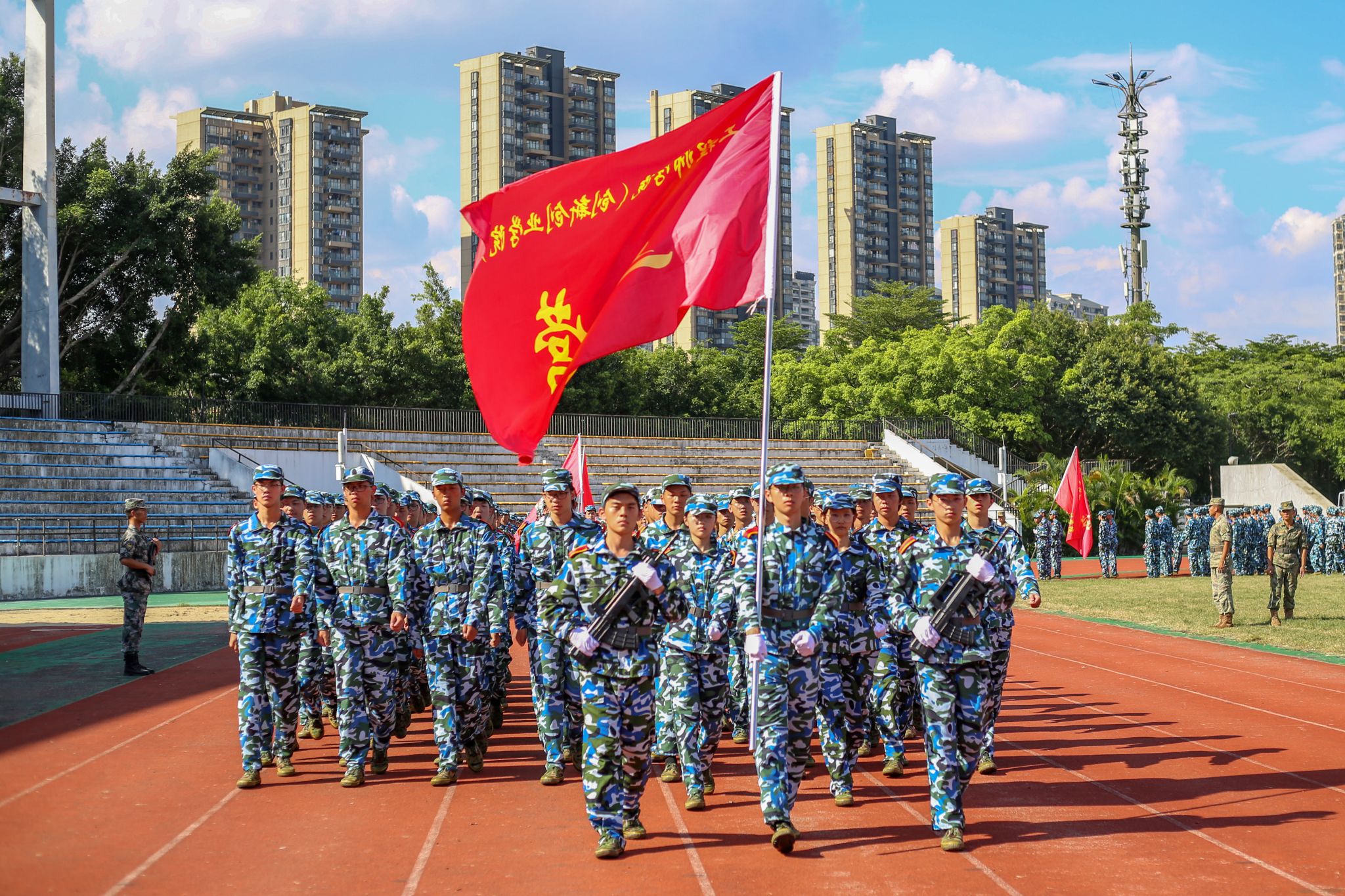 9月15日下午,我校2024级新生军训总结表彰大会在松山湖校区、莞城校区运动场同步举行。绿茵场上,鲜艳的国旗与营旗迎风飘扬,迷彩服整齐划一,莞工新生以昂扬自信的精神面貌为自己的开学第一课画上圆满句号。校党委副书记、校长、军训工作领导小组组长马宏伟,校党委副书记、军训旅政委李忠红,军训旅有关负责同志,各营...